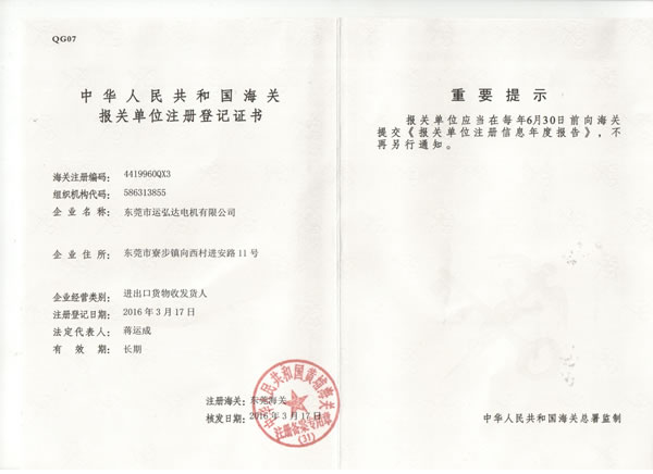 從開公司到現(xiàn)在,一直和運弘達(dá)合作,運弘達(dá)電機質(zhì)量非常好,都遵守ISO9001:2008質(zhì)量控制體系,我們很放心,并于貴公司建立良好的合作關(guān)系!還有優(yōu)質(zhì)的售后服務(wù),遇到問題總能第一時間幫我們解決,非常感